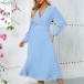 Elevate your style with this Pleated Dress with Belt. This elegant dress features a flattering V-neckline and dramatic puff sleeves that add a touch of sophistication and glamour to your look. The pleated detailing creates a flowy and feminine silhouette, perfect for a special occasion or evening event. Multi-colors avabile.