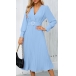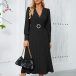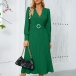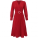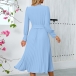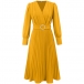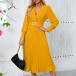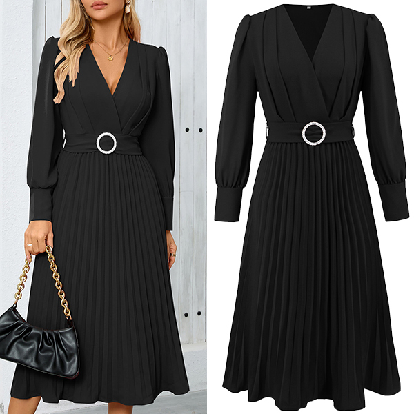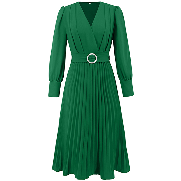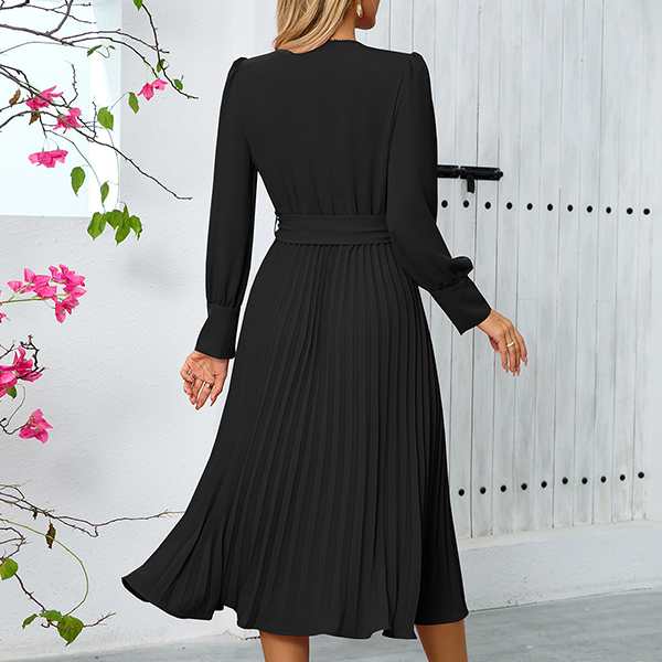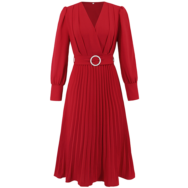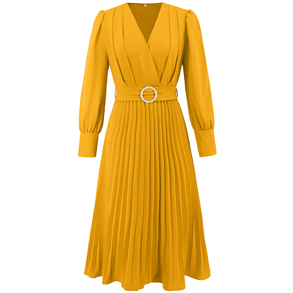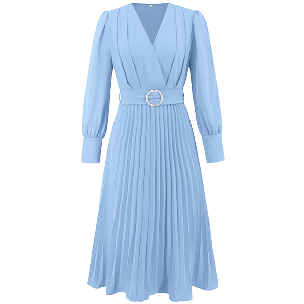 Fashion V-neck Puff Long Sleeve Pleated Dress with Belt