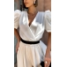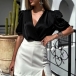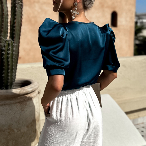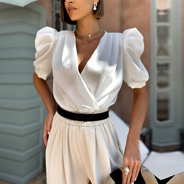 Fashion V-neck Puff Short Sleeve Shirt
