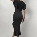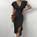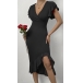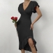Fashion V-neck Ruffle Short Sleeve High-rise Ruffle Irregular Hemline Bodycon Dress