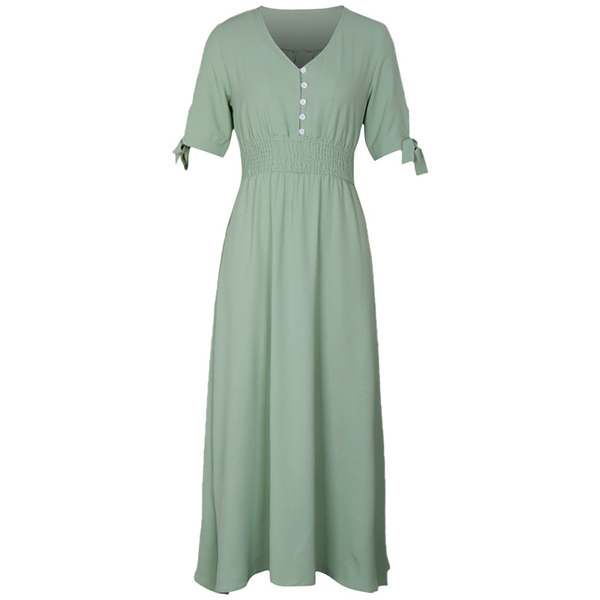 Fashion V-neck Short Sleeve Cinch Waist Midi Dress