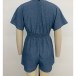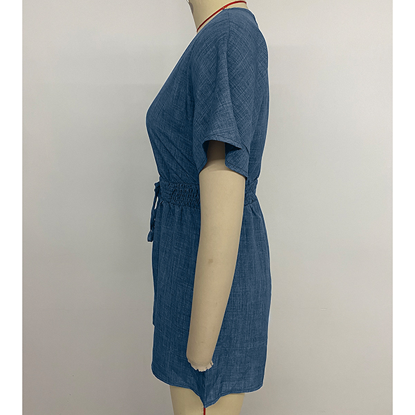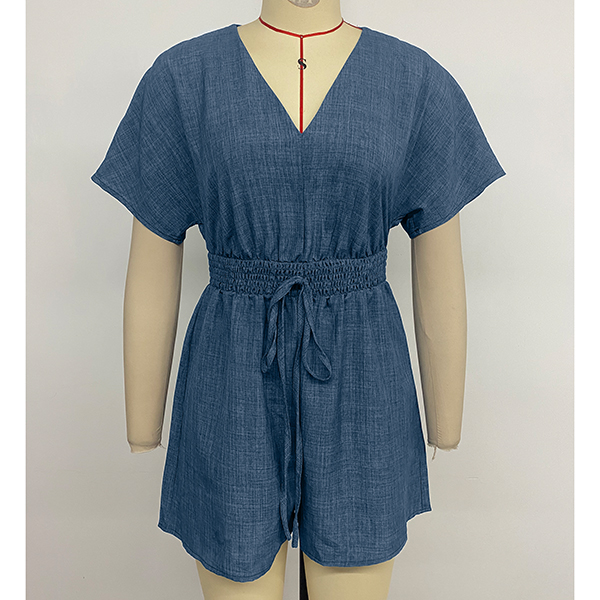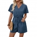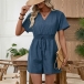 Fashion V-neck Short Sleeve Elastic Drawstring Waist Romper