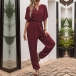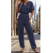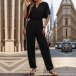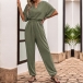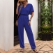 Fashion V-neck Short Sleeve Elastic Waist Jumpsuit