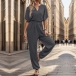 Look at this jumpsuit~The V-neckline adds a touch of elegance, while the short sleeves provide a classic and flattering look. The elastic waist cinches in at your natural waistline, creating a defined silhouette and adding a modern twist to the jumpsuit. It is the perfect blend of comfort and fashion, making it a versatile and stylish choice for any occasion.