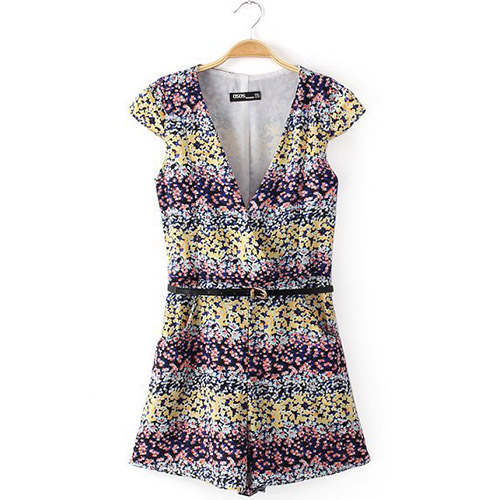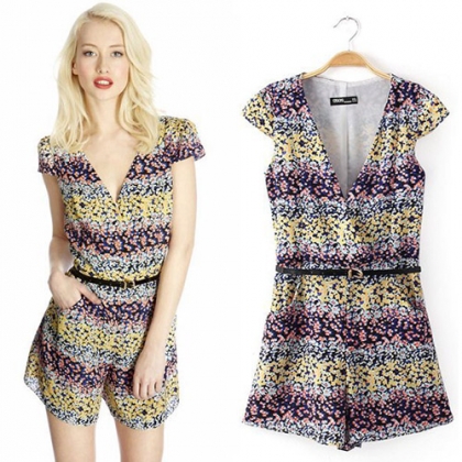 You look so sweet and sunny in this jumpsuit. It features floral print style,with v-neck and short sleeve design.