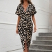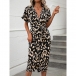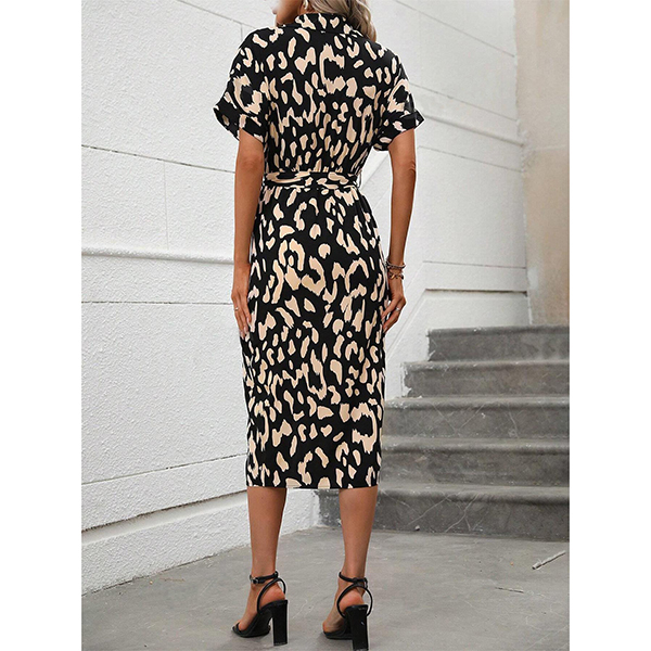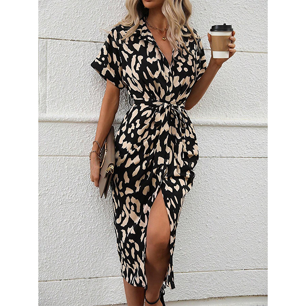 Fashion V-neck Short Sleeve Front Slit Shirt Dress