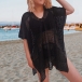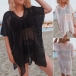 Fashion V-neck Short Sleeve Mesh Netted Slit Cover-up Shirt