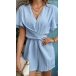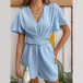 Fashion V-neck Short Sleeve Ruched Self-tie Romper