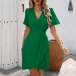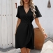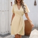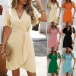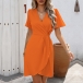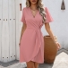 Fashion V-neck Short Sleeve Side Slit Mini Dress