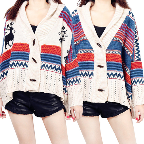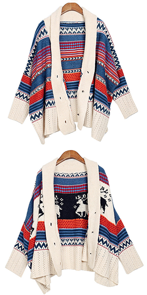 printed cardigan. It boasts cute reindeer and chic striped printed style that can instantly uplift your fashion and beauty.