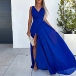 Fashion V-neck Sleeve High-slit Maxi Dress