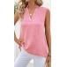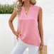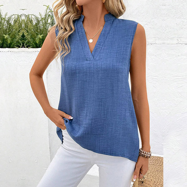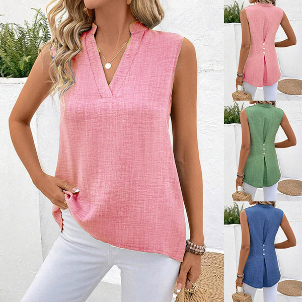This stylish shirt features a V-neckline, a sleeveless design, and a back button for gather waist design. Wanna have a try?