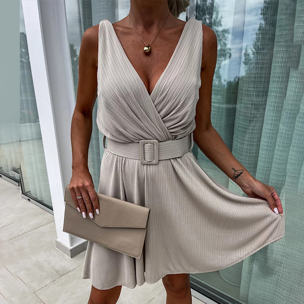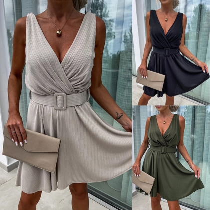 Fashion V-neck Sleeveless Backless Dress with Belt