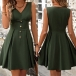 This chic green dress features V-neck, sleeveless, a cinched waist and front button decoration. Pair it with sneakers for a casual daytime look.