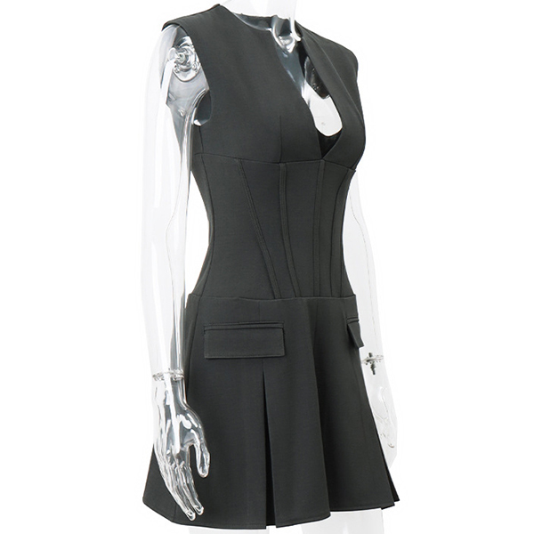 Look at this dress! It features a flattering V-neckline, sleeveless design, a cinched waist, and pleated details. The cinched waist creates a defined and flattering silhouette. Wanna have a try?