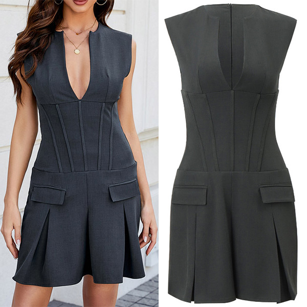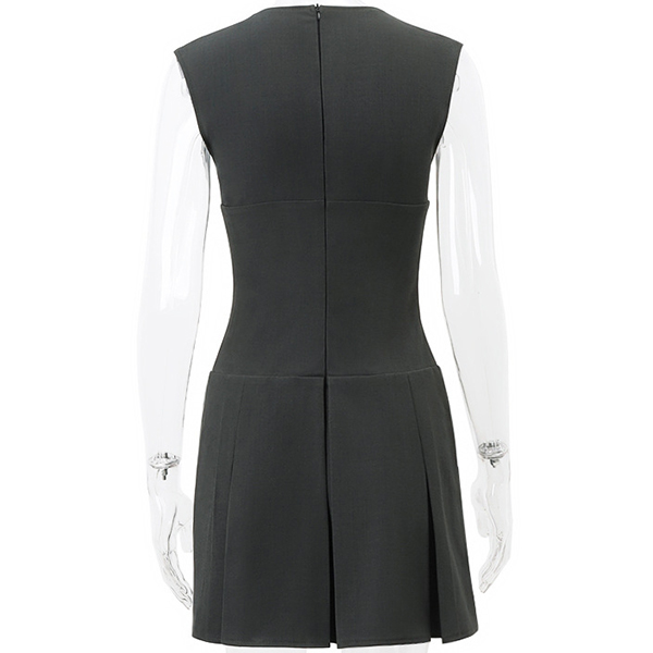 Fashion V-neck Sleeveless Cinch Waist Pleated Mini Dress