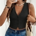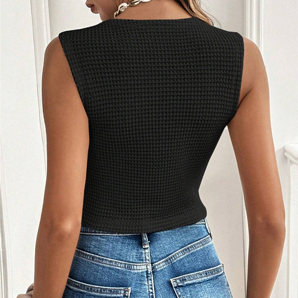 Stay trendy with this fashion-forward crop vest. Designed for a modern look, this versatile piece can be effortlessly layered or worn alone. Pair it with high-waisted jeans or a skirt for a complete ensemble that exudes confidence and flair.