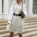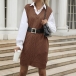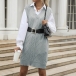 This chic vest features a stylish V-neckline and a unique diamond pattern that adds texture and visual interest. Perfect for transitioning seasons, it can be worn over a long-sleeve top or turtleneck for a cozy yet fashionable look.Wanna have a try?