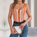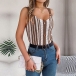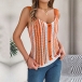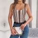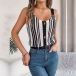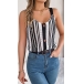Fashion V-neck Sleeveless Front Button Contrast Color Vertical Striped Hollow Out Cami Shirt