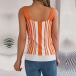 This trendy cami shirt features a flattering V-neckline and front button detailing for added style. The contrast color vertical stripes create a visually striking look, while the hollow out design adds a touch of edge and sophistication. Pair it with high-waisted pants or a skirt for a chic and fashion-forward outfit that will turn heads.