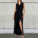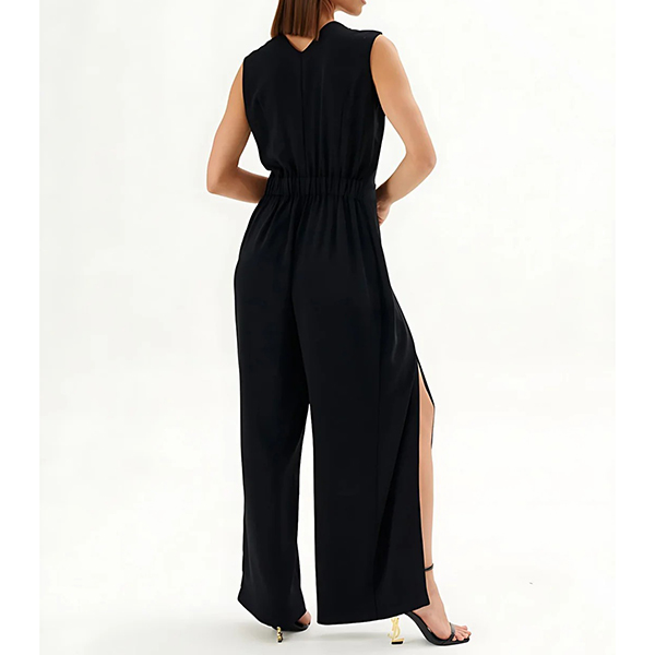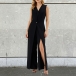 Fashion V-neck Sleeveless Front Slit Jumpsuit