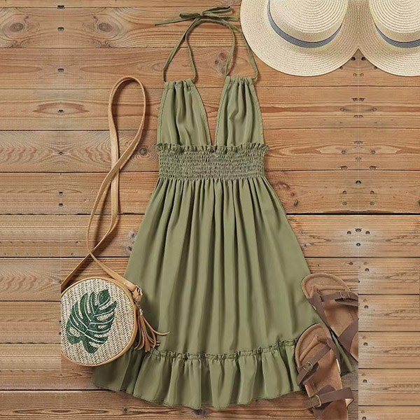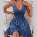 Fashion V-neck Sleeveless High-rise Mini Dress