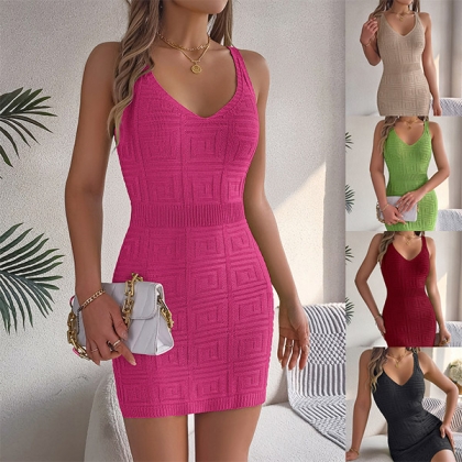 Fashion V-neck Sleeveless Knitted Bodycon Dress
