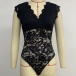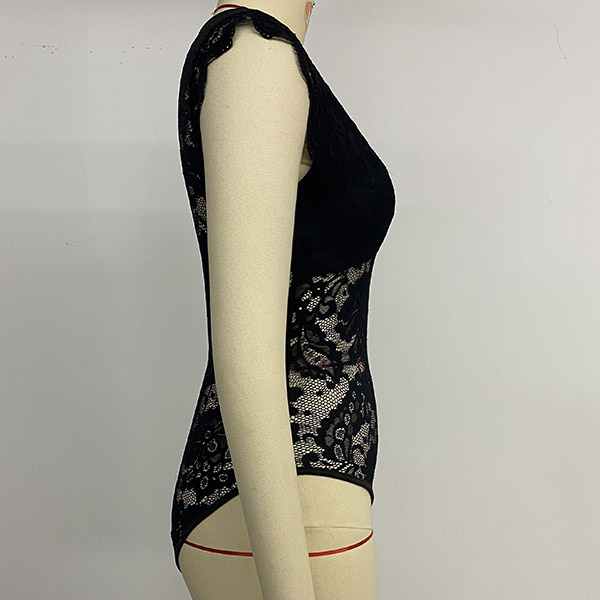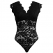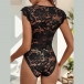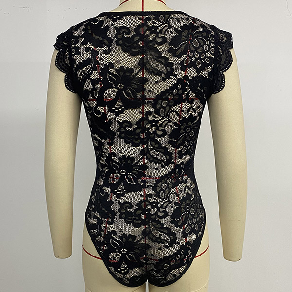 The standout feature of this bodysuit is the intricate, delicate lace that covers the entire silhouette. You could pair it with high-waisted trousers for a polished daily ensemble.