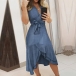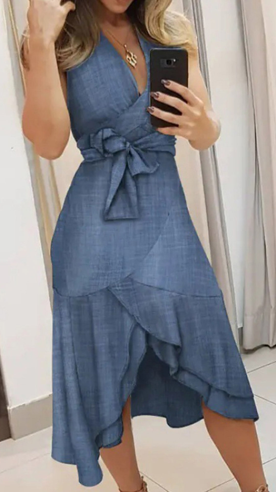 Fashion V-neck Sleeveless Self-tie Irregular Ruffle Hemline Dress