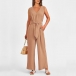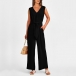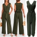 This trendy jumpsuit features a flattering V-neckline, sleeveless design and self-tie detail cinches in your waist and creates a feminine silhouette. The straight-cut pants offer a sleek and modern aesthetic that can be dressed up or down for any occasion. Perfect for daily wear.