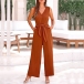 Fashion V-neck Sleeveless Self-tie Straight-cut Jumpsuit