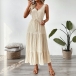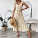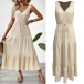 This is a chic and sophisticated dress that exudes elegance and charm. It features V-neck, sleeveless, high-rise with self-tie design, and tiered skirt. While the textured design adds a playful and unique element to the dress, creating a dynamic and eye-catching silhouette that is sure to turn heads. It is perfect for daily wear.