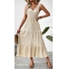 Fashion V-neck Sleeveless Self-tie Tiered Textured Midi Dress