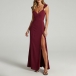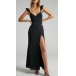 This fashionable party dress features a V-neckline, sleeveless design, and side slits, creating a chic and elegant look. Pair it with heels and statement jewelry, it would ideal for cocktail parties or formal events.
