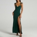 Fashion V-neck Sleeveless Side Slit Maxi Party Dress