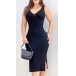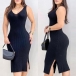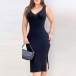 Fashion V-neck Sleeveless Side Slit Ribbed Bodycon Dress