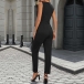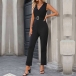Fashion V-neck Sleeveless Straight-cut Jumpsuit with Belt