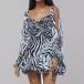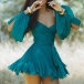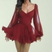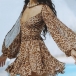 Fashion V-neck Slit Long Sleeve Mini Dress