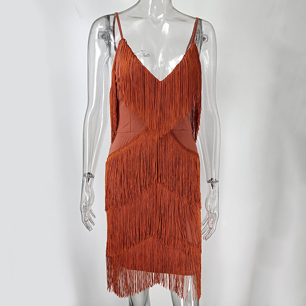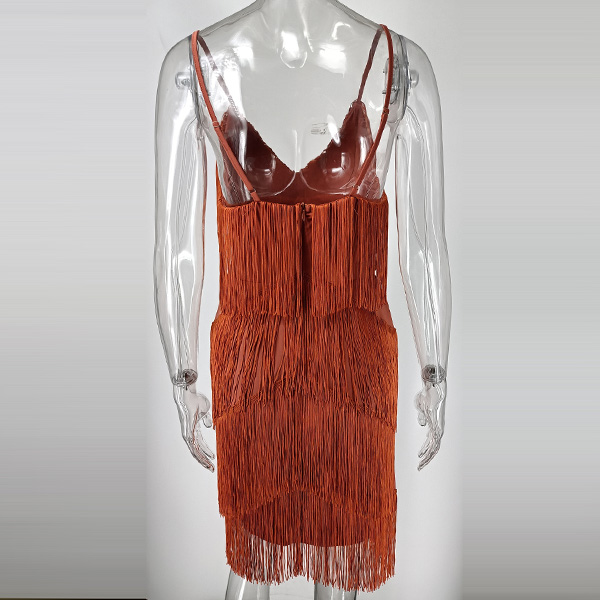 Fashion V-neck Tassel Slip Party Dress
