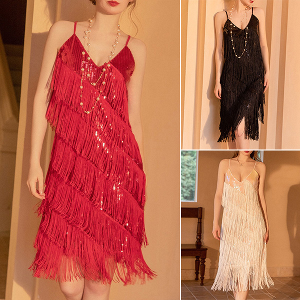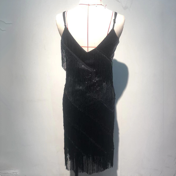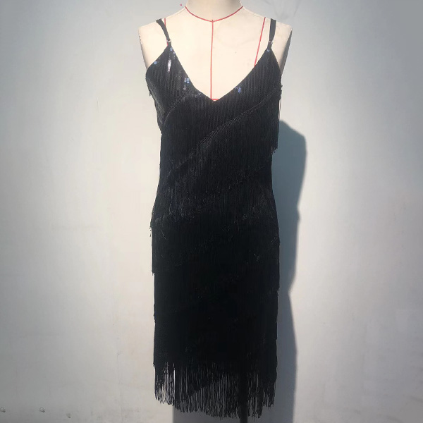 This eye-catching dress features a flattering V-neckline that accentuates your décolletage, while the delicate tassel embellishments add a touch of glamour and movement. The slip-style silhouette skims your curves, providing a comfortable and effortless fit. Wanna have a try?