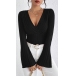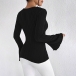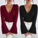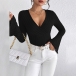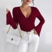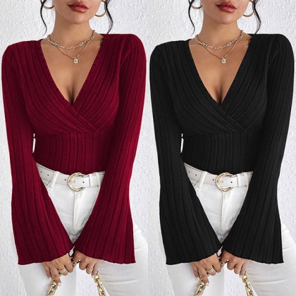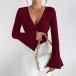 Fashion V-neck Trumpet Long Sleeve Ribbed Shirt