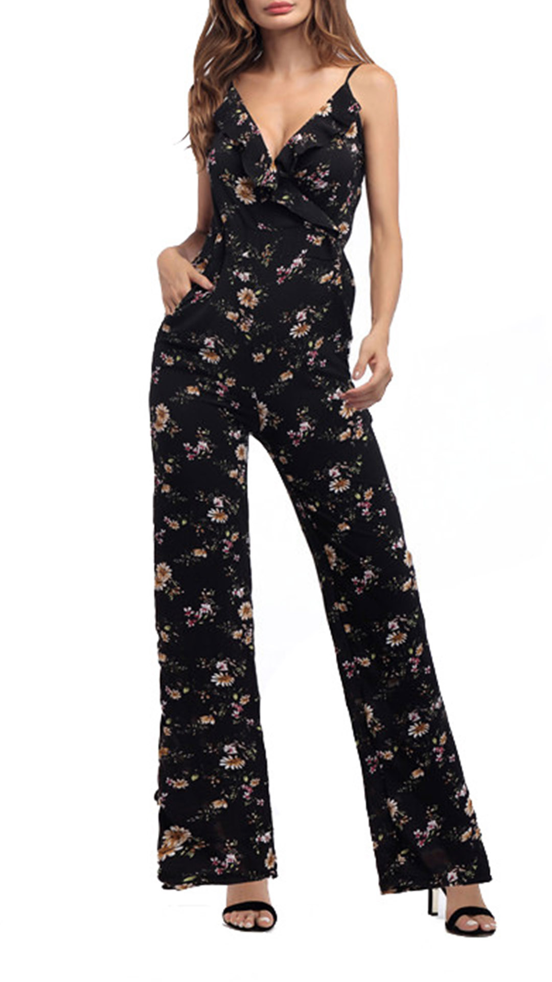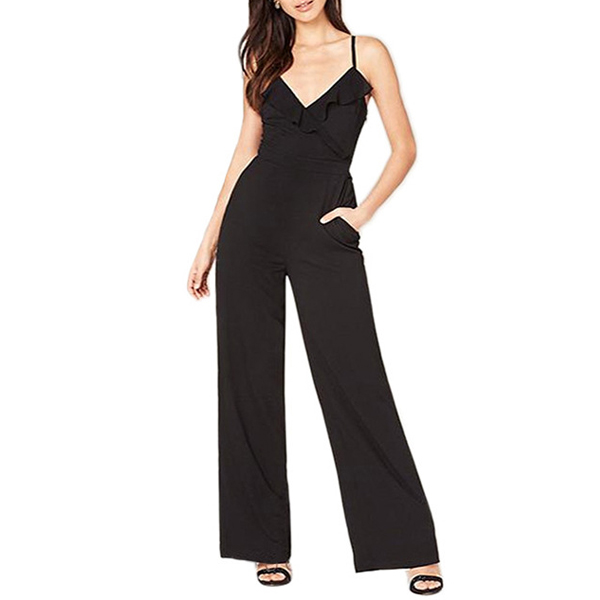 This jumpsuit is perfect for any formal or semi-formal occasion, the ruffled V-neck and wide-leg silhouette are both flattering and stylish, while the high-waist design ensures a comfortable and flattering fit.