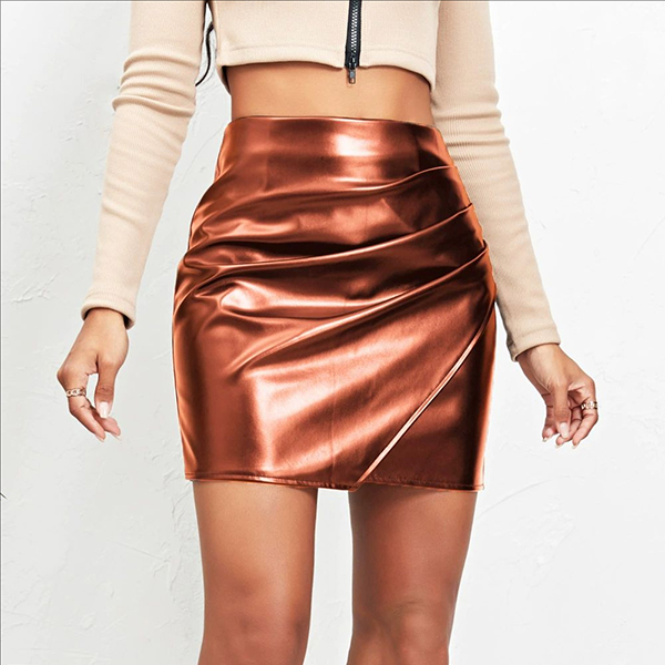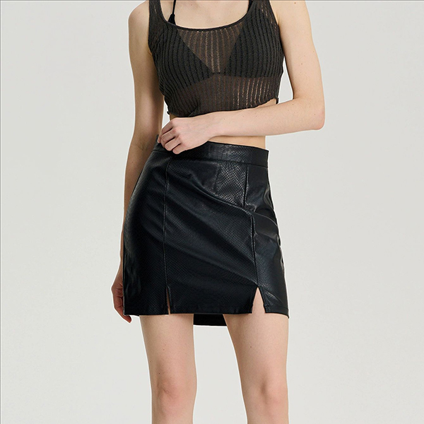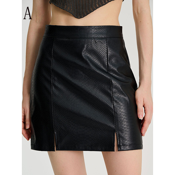 Fashion V-Shape Waistline Artificial Leather PU Skirt