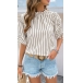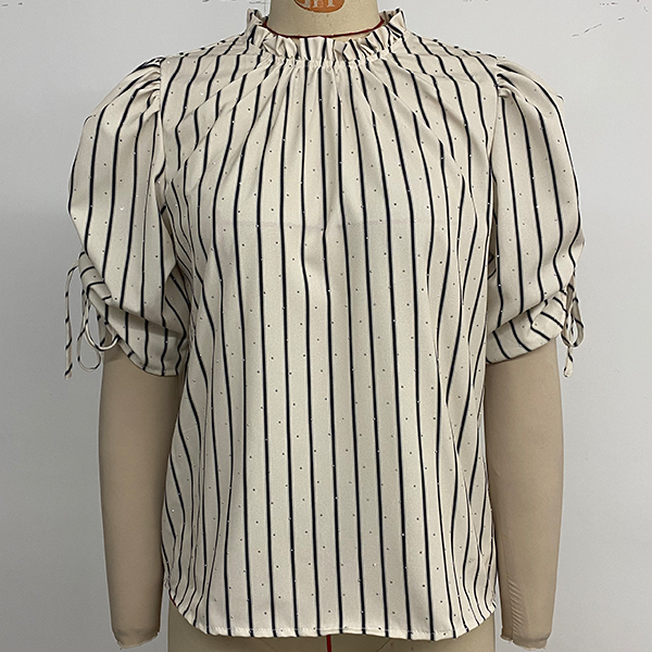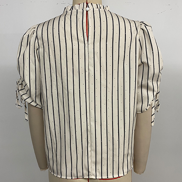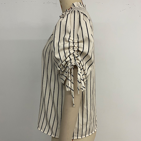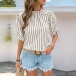 Fashion Vertical Stripe Printed Crew Neck Drawstring Short Sleeve Shirt