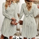 Fashion Vertical Stripe Printed Self-tie Shirt Dress