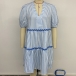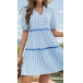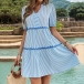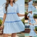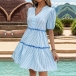 Fashion Vertical Stripe Printed V-neck Short Sleeve Tiered Dress