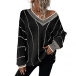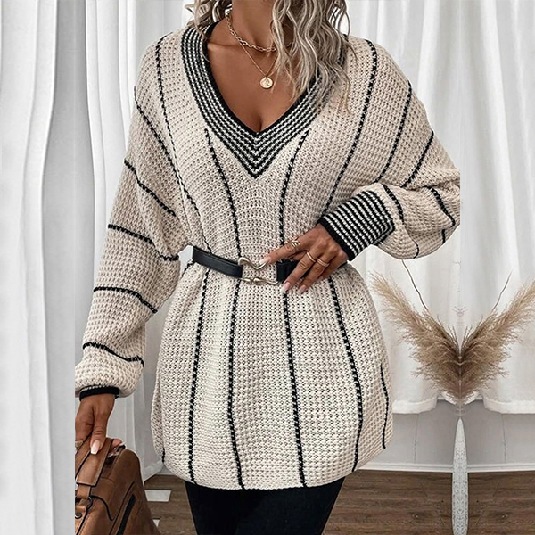 This sweater is the perfect blend of style and comfort. The vertical stripe design adds a touch of sophistication and elongates the silhouette. The V-neckline adds a flattering and feminine touch, while the batwing sleeves provide a relaxed and effortless look. Crafted from high-quality knitted fabric, it offers both warmth and breathability.