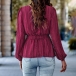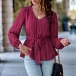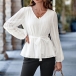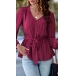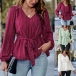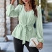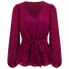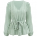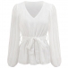 Fashion Vertical Stripe V-neck Long Sleeve Shirt with Self-tie Belt