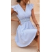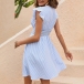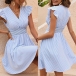 Fashion Vertical Stripe V-neck Ruffle Cap Sleeve High-rise Mini Dress