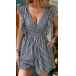 Fashion Vertical Stripe V-neck Ruffle Sleeveless Romper
